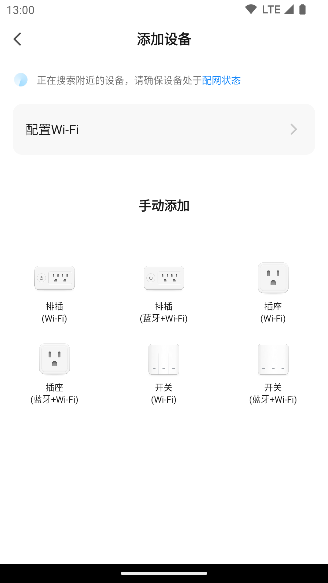- 请根据产品说明书或包装了解智能排插是否支持蓝牙功能。若支持,点击排插设备类型对应的「蓝牙 + Wi-Fi」图标;若不支持,点击该类型的「Wi-Fi」图标。如果您接入的是灵思智能种植插座,则点击「排插(蓝牙 + Wi-Fi)」图标。